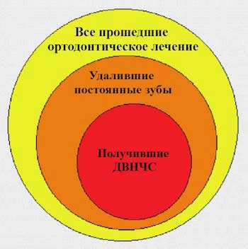 - Можно иметь дефицит места на верхней челюсти (скученность) и не обращаться за ортодонтическим «лечением», т.е. иметь ДВНЧС без ортодонтического «лечения» в прошлом